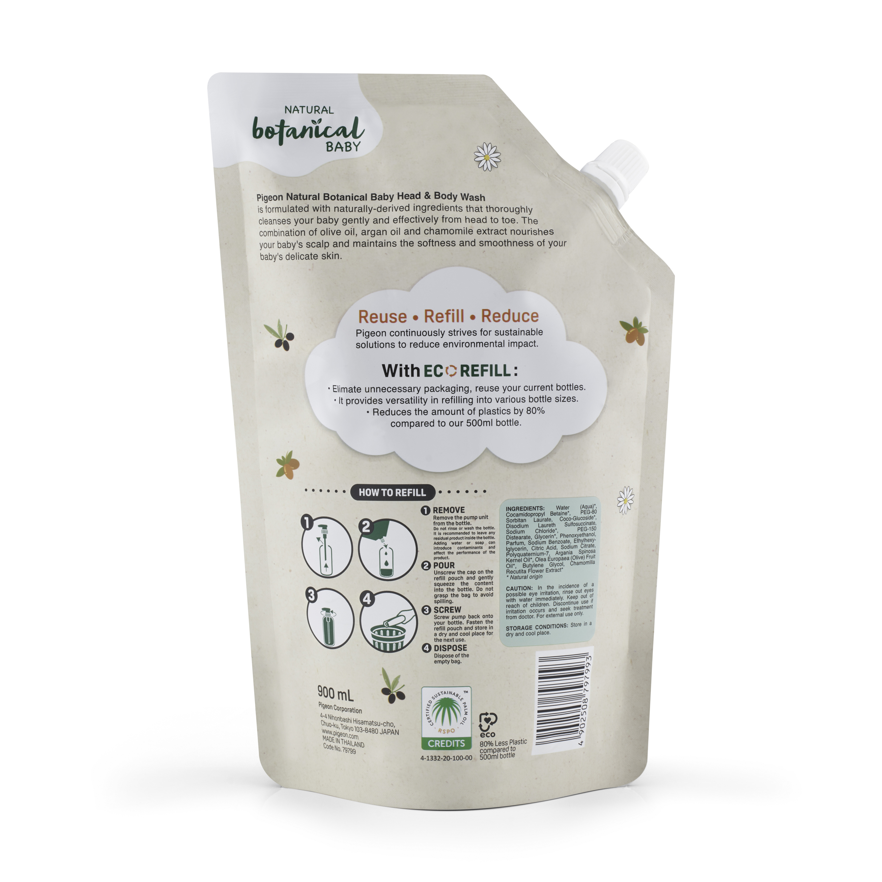 Natural Botanical Head and Body Wash Refill 900ml